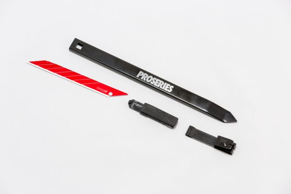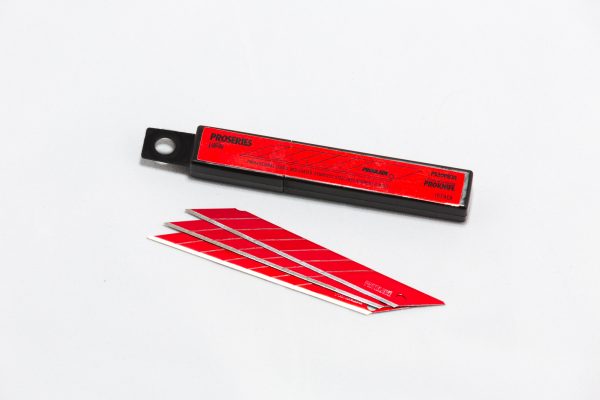 PROSERIES PROKNIFE stainless steel knife is the only black handled knife with a red, 30-degree PROBLADE. This 9MM snap-off knife is ideal for car wrap installations and cutting. The PROKNIFE is the premier choice among the professionals in the graphics industry. The rust resistant stainless steel holder now comes with PROBLADE, a red, high-grade stainless steel, 30 degree blade. PROKNIFE has an extra high quality stainless steel sliding track which allows the blade to glide in and out smoothly. Featuring an Auto-Lock slider to hold the blade secure for maximum cutting efficiency. Designed by the professionals at Paint is Dead. The 30 degree tip PROBLADE used in this professional snap off knife is made of a special high quality stainless steel for the ultimate sharpness and optimum edge-retention.